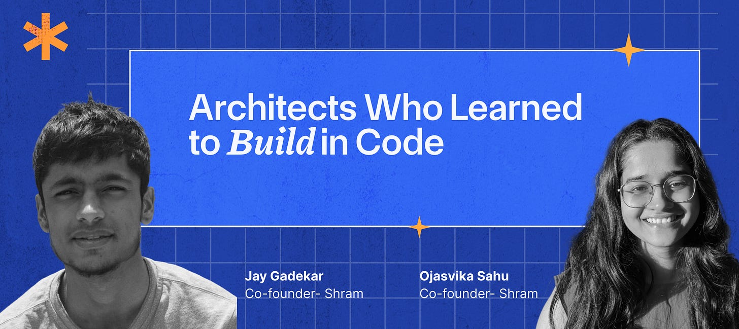 Jay and Ojasvika are architects-turned-founders who chose to build Shram where they’re blending design thinking and technology to create work tools that feel truly human. Read their story here.