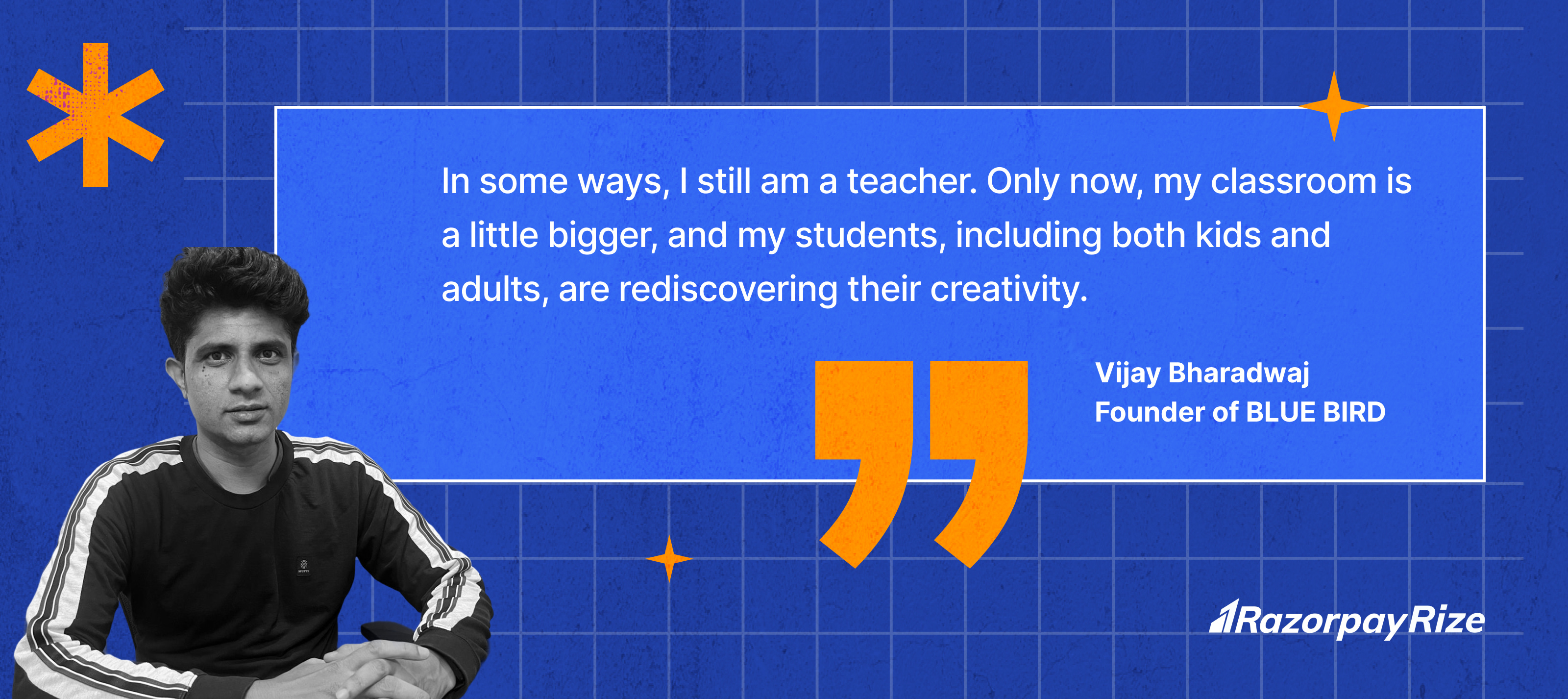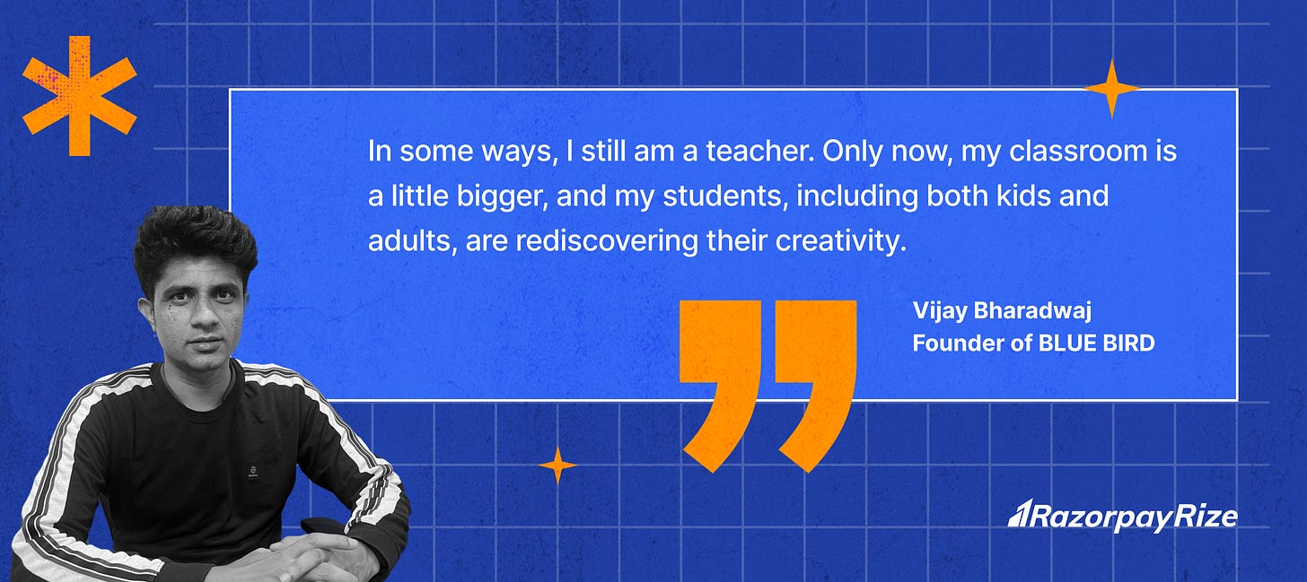 What stands out about Vijay isn’t just his creativity, but his willingness to unlearn, stay curious, and build something meaningful for people of all ages. At Razorpay Rize, we love championing founders like Vijay- the ones who prove that you don’t need a business degree to make a real difference, just a whole lot of heart (and a little bit of hustle)