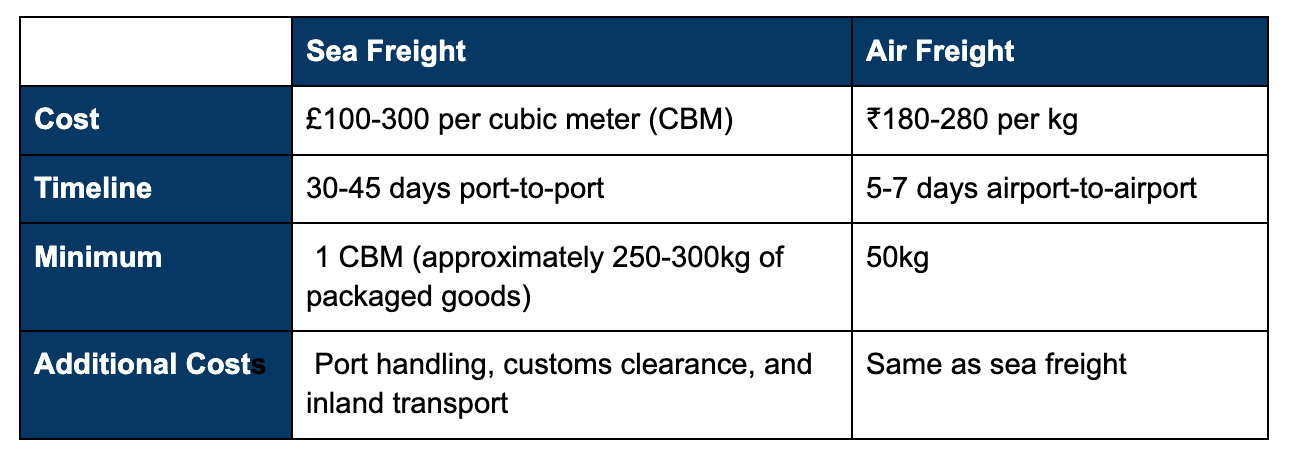 Freight Forwarders (Sea/Air Freight) are best suited for D2C brands shipping bulk inventory to the UK, rather than sending individual parcels. Air freight is faster, while sea freight offers the lowest cost per unit. This option helps reduce overall shipping expenses, improves delivery speed once stock is in a UK warehouse, and makes returns easier- ideal for brands ready to scale.