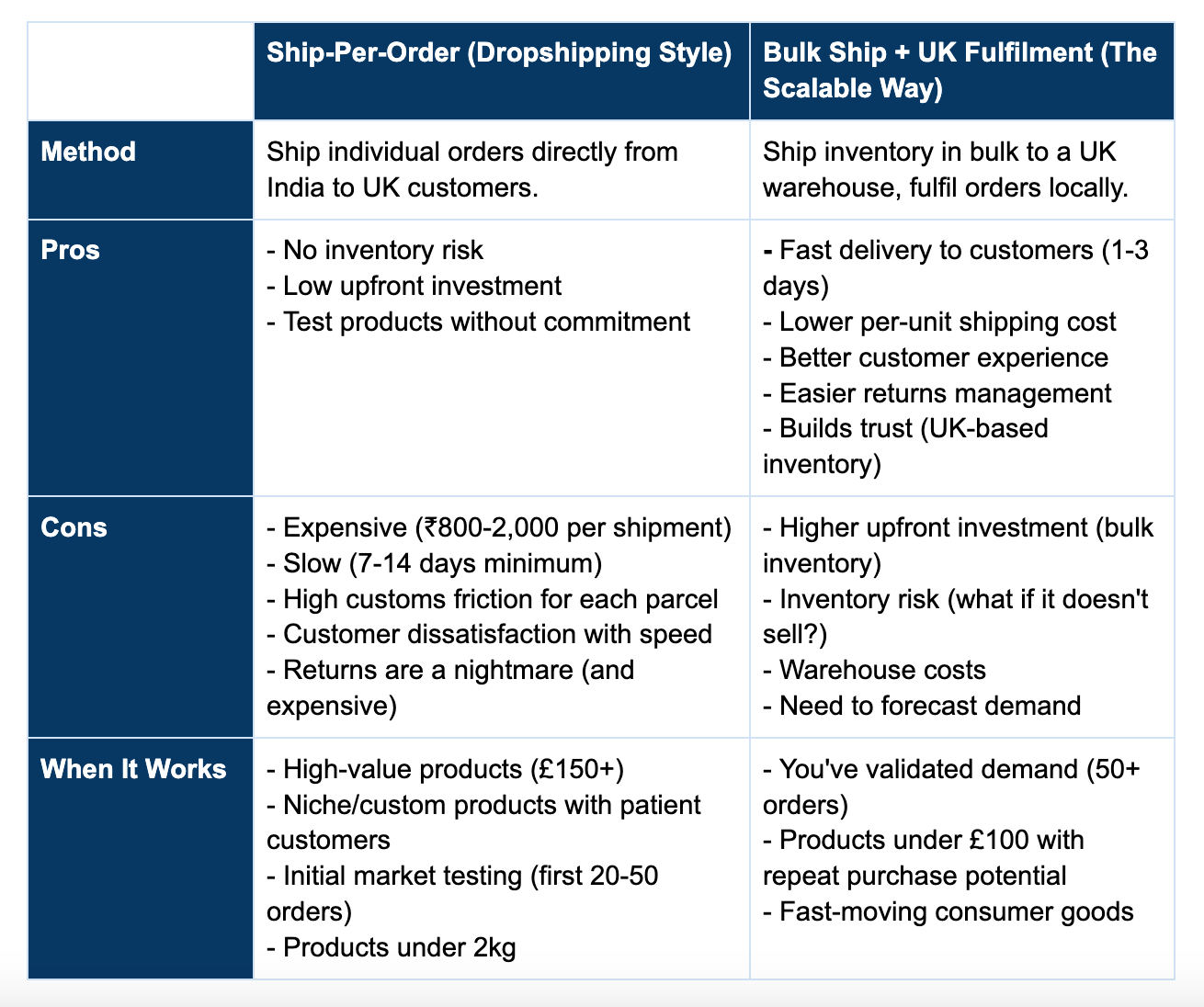 This approach is beneficial for Indian D2C brands selling consistently in the UK, as it reduces shipping time from weeks to just 1–3 days for local delivery.
