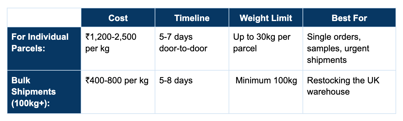 Best for: Bulk inventory shipments to UK warehouse (not individual orders)